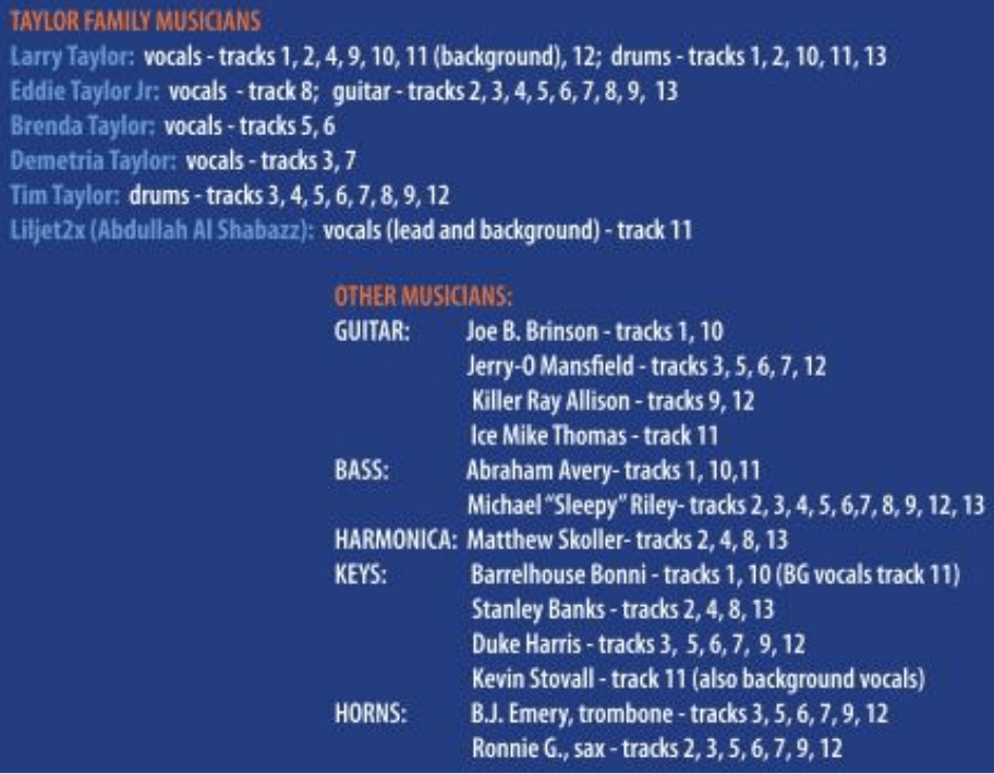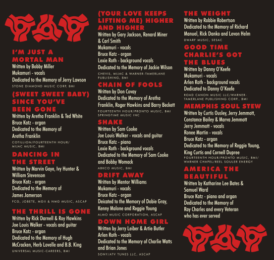 The talented players also include James Pennebaker, David Santos, Yates McKendree, Tim Hooper, Bill Sharrow, Billy Wear, Mikey Junior, Su Teears, with the Philadelphia Funk Authority Horns – Dale Gerheart, Kyle Hummel, Neil Wetzel, Andrew Kowal – with background vocals from the McCrary Sisters.