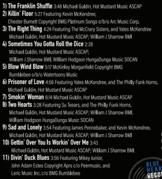 An extended-jam version of Howlin’ Wolf’s “Killin’ Floor” follows, adding honky-tonk piano flavor to the stinging guitar solo on this tough blues classic. Guldin and the McCrary Sisters then make a fervent gospel plea for “love and compassion and understanding” on “The Right Thing.”