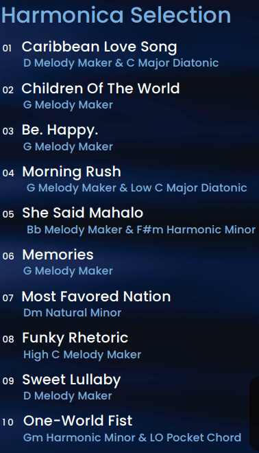 It’s not just Oskar and his harmonica creating this musical voyage. There’s an orchestral effect and musical tapestry that’s woven by many other outstanding musicians, including those who perform with Oskar regularly as Lee Oskar & Friends: Darian Asplund (Saxophone); Andrew Cloutier (Drums); Denali Williams (Percussion); Dean Schmidt (Bass); Brian Monroney (Guitar); Alex Mortland (Guitar); Andrew Joslyn (Strings); and Mack Grout (Keys and Piano); as well as special guest artists: Takahiro Miyazaki (Saxophone and flute); Paul Hanson (Bassoon); Randy Oxford (Trombone) Harold Brown (Drums, Percussion); Thione Diop (Percussion); Joe Doria (Organ); Phil Peterson (Strings); “Sancho” Youichrou Suzuki (Shakuhachi) and Mayo Higa (Shamisen). Oskar plays various harmonica models in altered tunings and keys on this album, as specified in the liner notes (below). And he created the accompanying artwork.